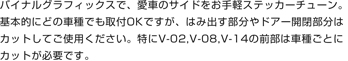 | .●イメージイラストにつき実物とは多少サイズ比率が異なります。 .●上のイラストは Lサイズのイメージです。 .●左右各1枚の合計2枚で1セット、透明アプリシート付きで取付カンタン。 |